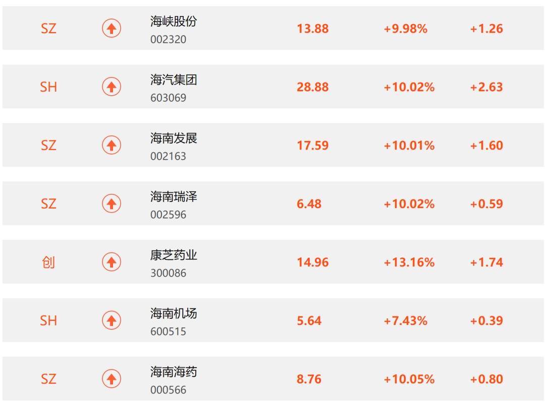 23日早盘,A股三大指数集体高开,海南封关带动相关概念股持续走高领涨大盘。海峡股份、海汽集团、海南发展、海南瑞泽涨停,康芝药业、海南机场、海南海药、神农种业、海马汽车跟涨。