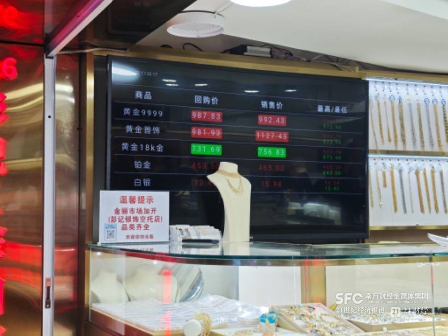多家商户亦向记者表示,目前已经不做投资金业务了,客户可去银行购买。另一家商户直言,如果愿意按首饰金的价格买就买,不愿意买也没办法。不过,记者也注意到,商圈角落有少数商户仍保留万足金、千足金、饰品金等多种标价。该商户并未正面回应记者关于标价方式差异的询问。